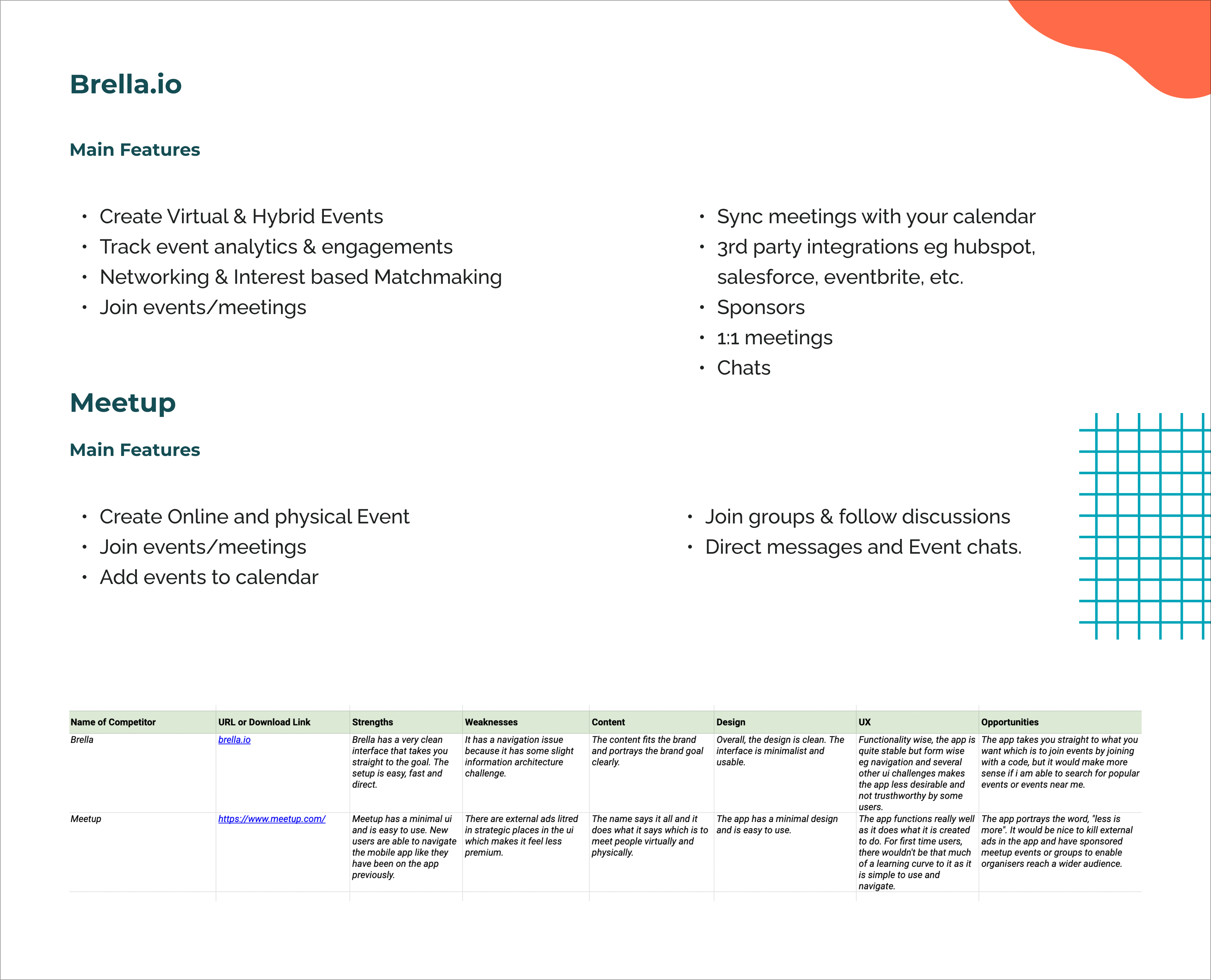 From the Competitive analysis done, here is a list of ideas generated, that could be executed at the MVP phase below: