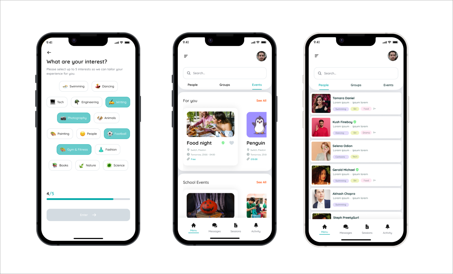 cool and warm colors were used in the design of unibuddies. a semi- formal font (quicksand) was used to depict the essence of the app - "unwind" "have fun" "socialise" "learn new things"
